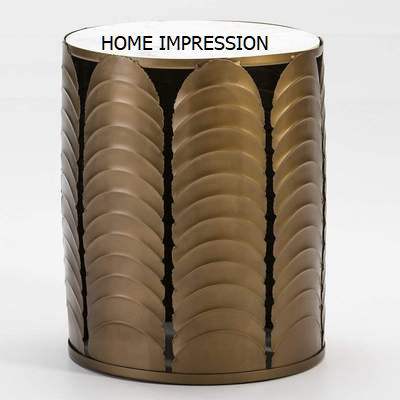 โต๊ะกาแฟสีทองทำจากอลูมิเนียมหล่อโลหะดีไซน์ใหม่พร้อมหินอ่อนสีขาวคุณภาพดีดีไซน์หรูหรา
