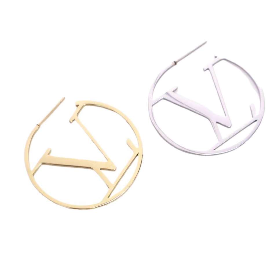 ต่างหูสแตนเลสดีไซน์หรูหรา แบรนด์ดัง ชุบทอง 18K ไทเทเนียมสตีล ต่างหูแบบเกี่ยวหูสำหรับผู้หญิง รูปทรงเรขาคณิตวงกลม เครื่องประดับ