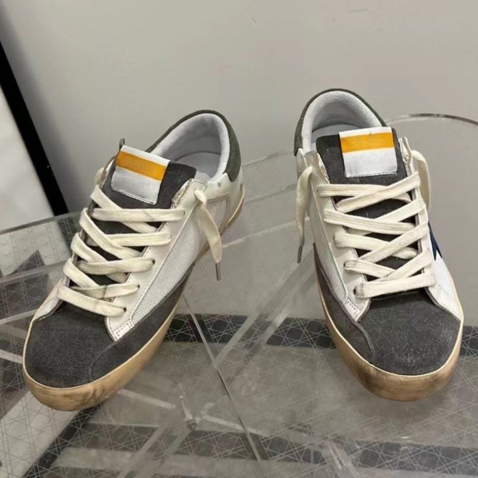 รองเท้าผ้าใบดีไซน์หรูหรา หนังห่านขาวแท้ ป้องกันการลื่น สวมใส่สบาย รองเท้าแฟชั่นสุดฮิต สีทองสกปรก