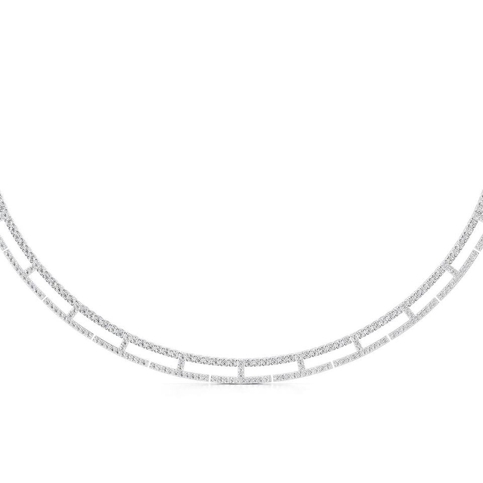 สร้อยคอเพชรเส้นคู่ที่หรูหราสำหรับงานแต่งงานดีไซน์ซับซ้อนพร้อมสองแถวเพื่อสไตล์หรูหราเหนือกาลเวลา