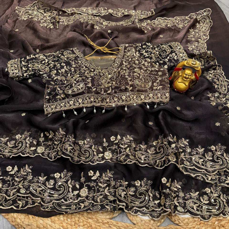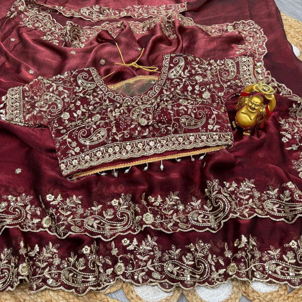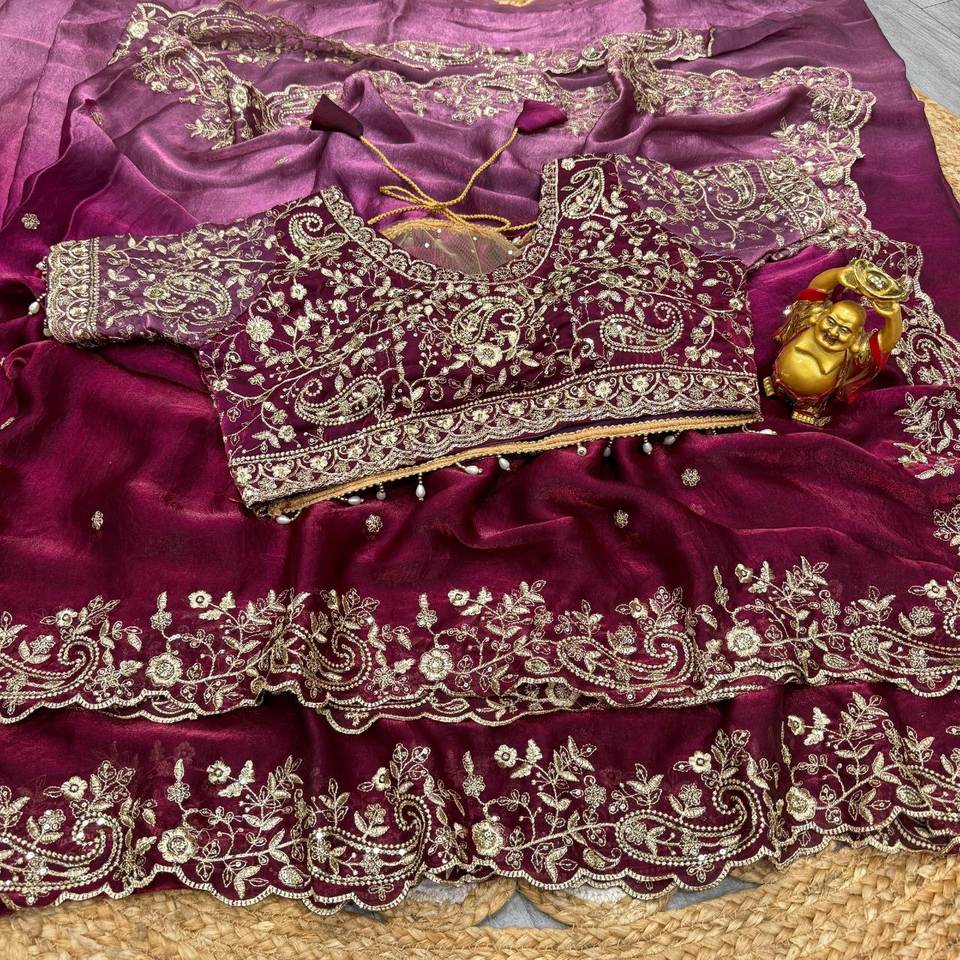 ผ้าซิลค์มังโก้ลายปักดิ้นทองแบบดั้งเดิมสุดหรูหรา พร้อมเสื้อปักสำเร็จรูป ยาว 5.5 เมตร