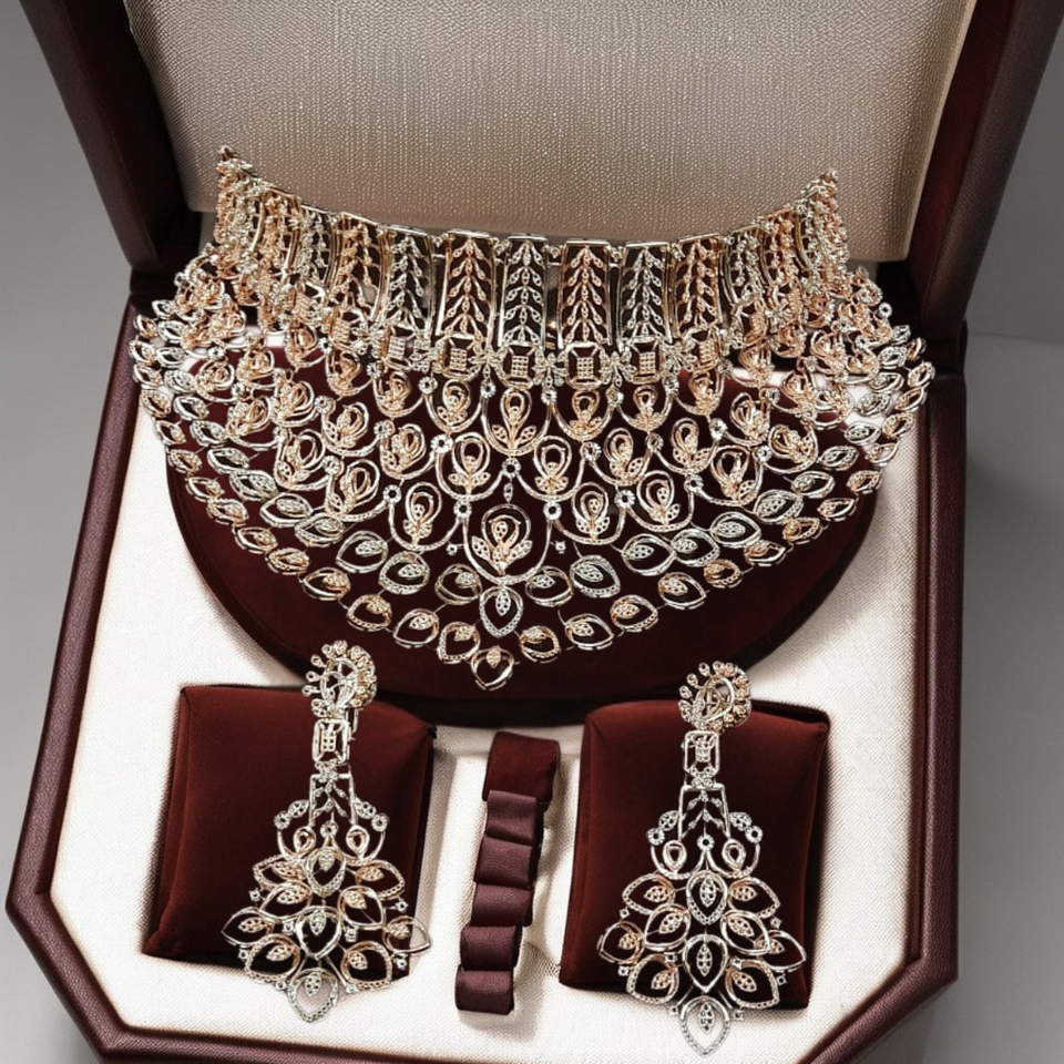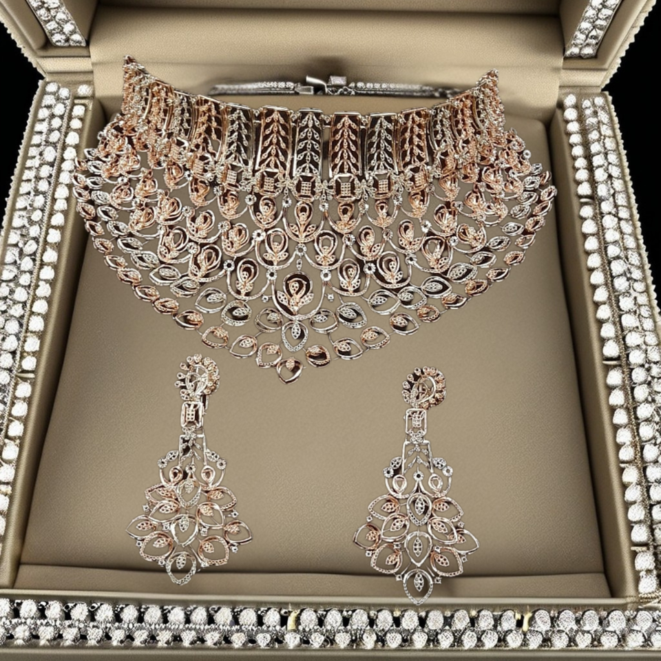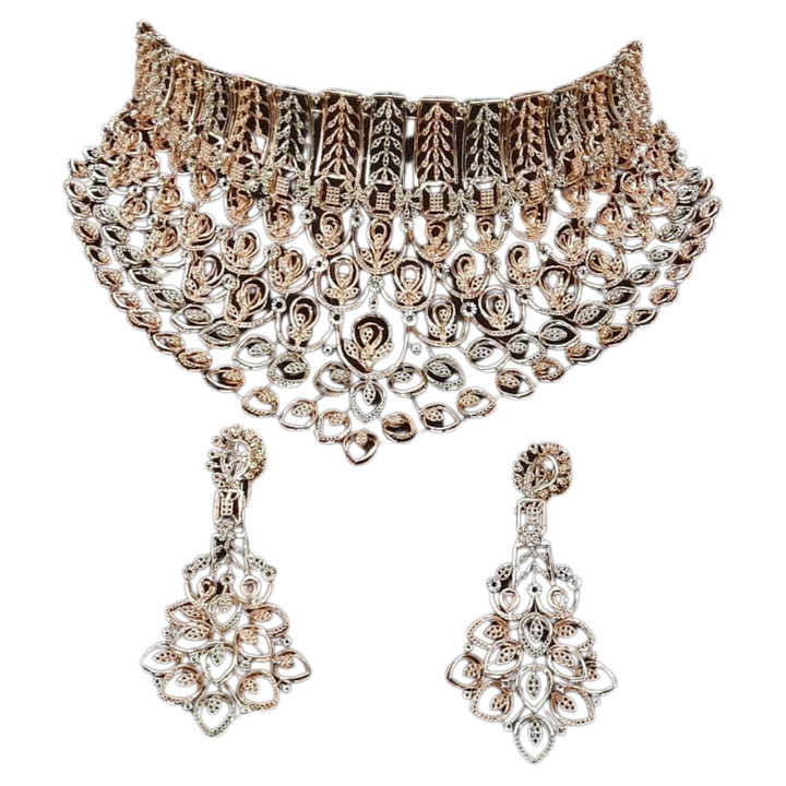 สร้อยคอเพชรหรูหราหรูหราและชุดโช้คเกอร์สำหรับผู้หญิงสำหรับงานแต่งงานและงานหมั้นด้วยการติดตั้งที่สง่างาม