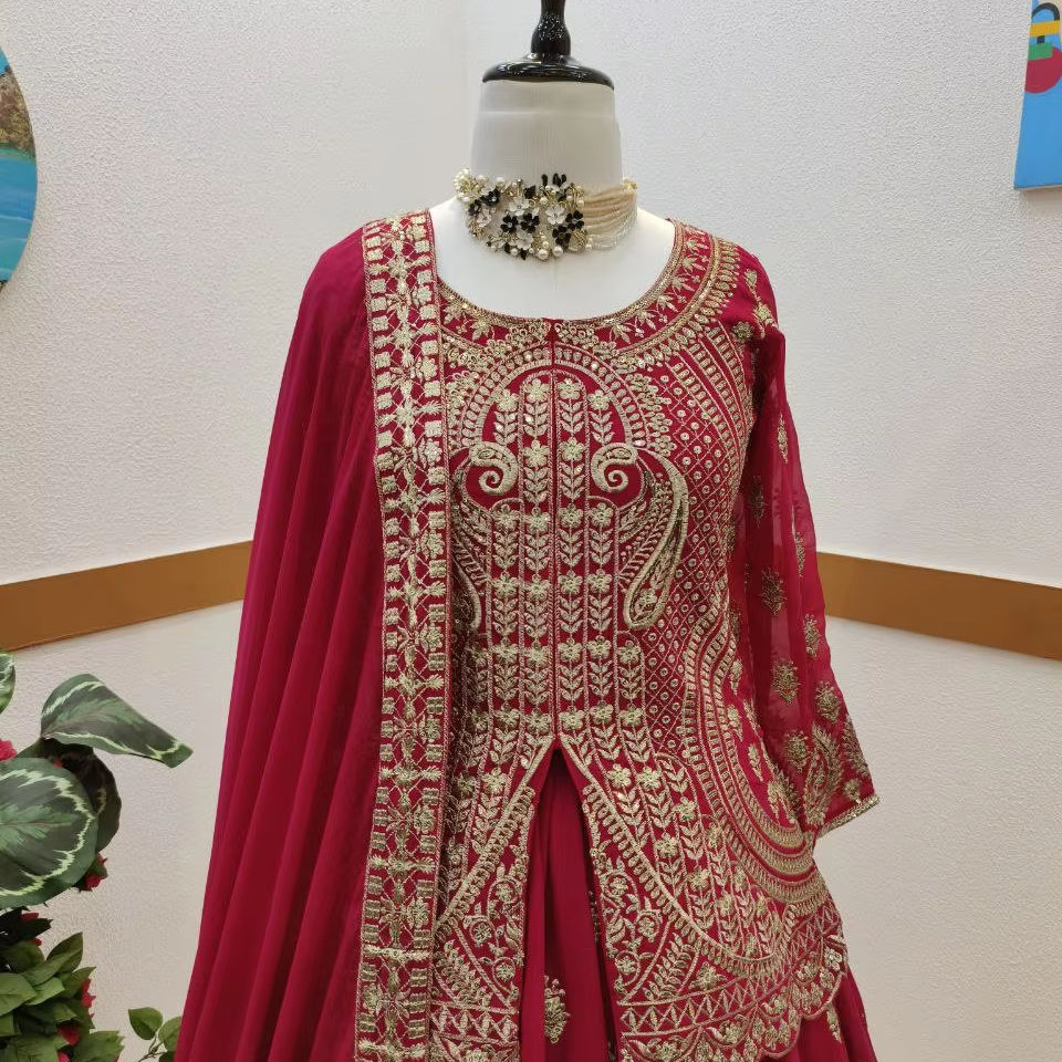 ชุดผ้าลาย georgette lehenga choli เทียมหรูหราพร้อมเลื่อมหนักและงานด้ายสำหรับโอกาสพิเศษของสาวๆจากอินเดีย