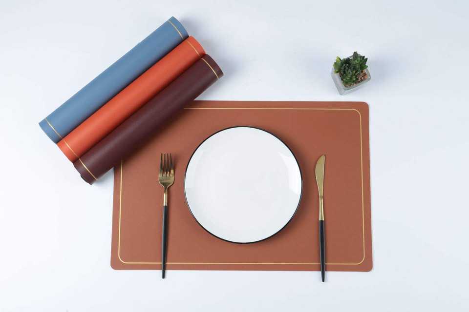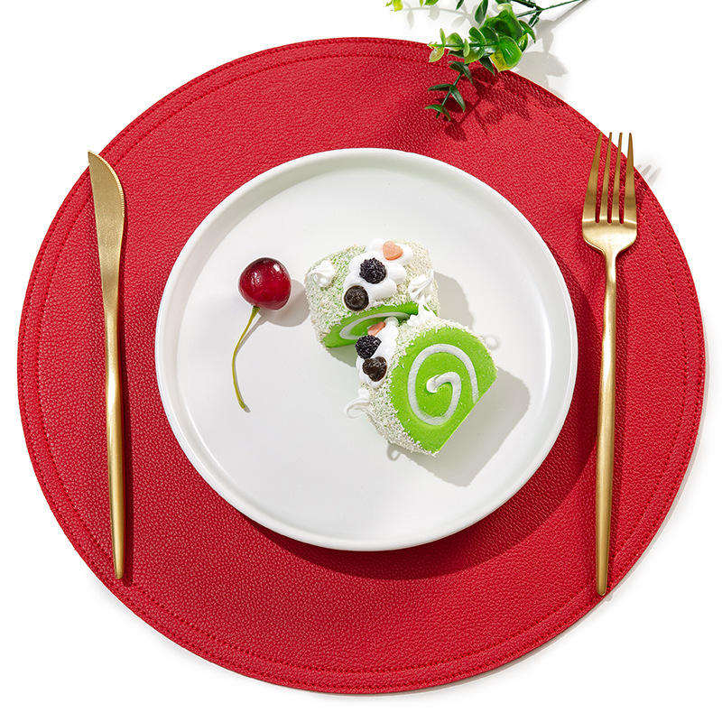 แผ่นรองจานหนัง PU หรูหรา เช็ดทำความสะอาดได้ เหมาะสำหรับงานเทศกาล บ้าน งานเลี้ยง แผ่นรองโต๊ะและแผ่นรองอาหารแบบกำหนดเองได้ สำหรับโต๊ะกาแฟและโต๊ะรับประทานอาหาร