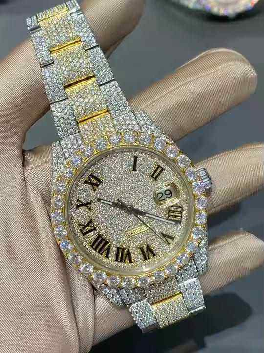 นาฬิการะบบอัตโนมัติสไตล์ฮิปฮอปแบบตัวเลขโรมันนาฬิกาเพชรโมอิสสีคู่สุดหรูสำหรับผู้ชายผู้หญิง