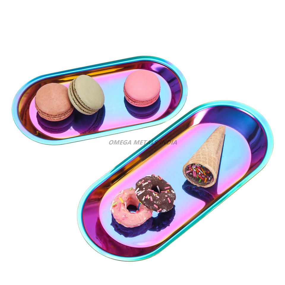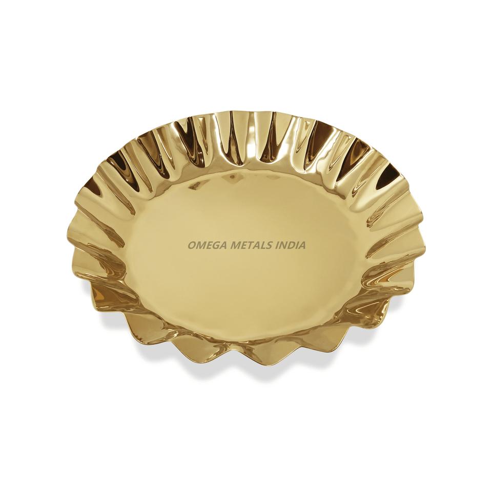 ถาดเสิร์ฟสีทองหรูหราพร้อมพื้นผิวมันวาวและการออกแบบที่หรูหราเหมาะสำหรับการแสดงขนมและขนมหวานอย่างสวยงาม