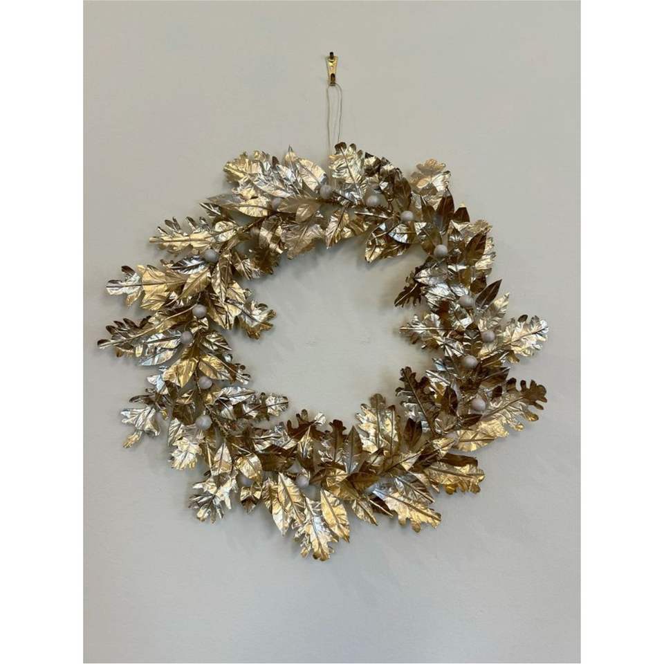 พวงหรีดโลหะสีทองหรูหรา ตกแต่งผนัง สีแชมเปญโกลด์ สำหรับบ้าน โรงแรม งานแต่งงาน คริสต์มาส งานพรีเมียม ทำจากเหล็กแขวนผนัง