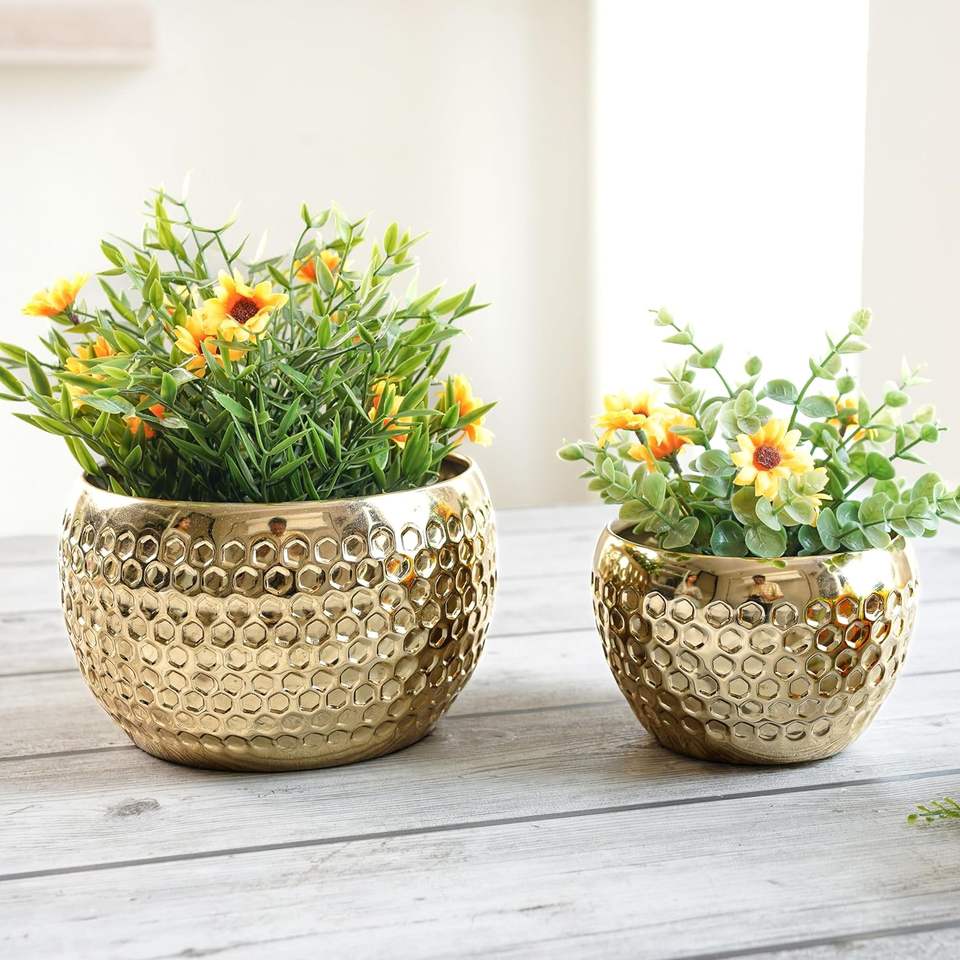 แจกันดอกไม้ทำจากโลหะเคลือบทองหรูหราใช้เป็นค้อนขัดเงาการจัดดอกไม้ที่สวยงามของตกแต่งสวนในบ้านแบบคลาสสิก