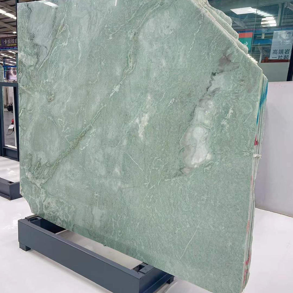 วัสดุหินสีเขียวสุดหรู โต๊ะกาแฟ โต๊ะรับประทานอาหาร ท็อปโต๊ะหินอ่อนธรรมชาติสั่งทำพิเศษ หินหรูหราสำหรับตกแต่งผนังทีวี