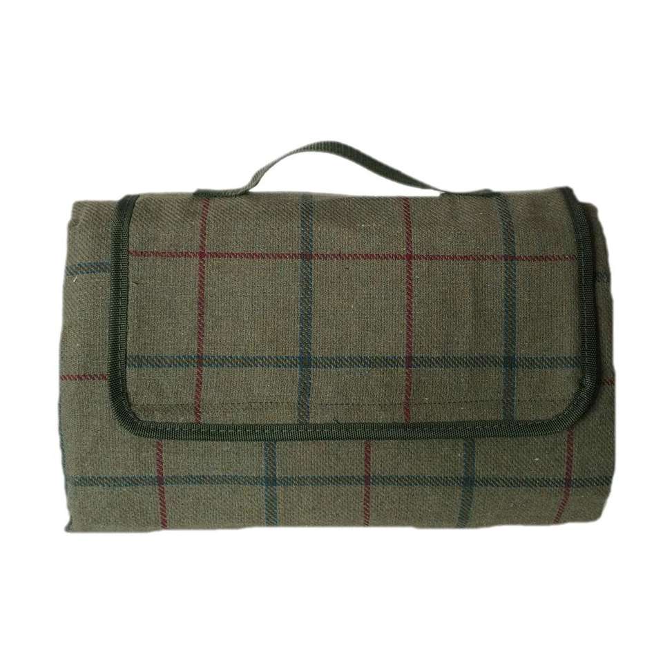 ผ้าห่มปิกนิกทวีดสีเขียวหรูหรากันน้ำพับเก็บได้สำหรับกิจกรรมกลางแจ้งเสื่อตั้งแคมป์ทำจากอะคริลิคผ้าใบอ็อกฟอร์ด
