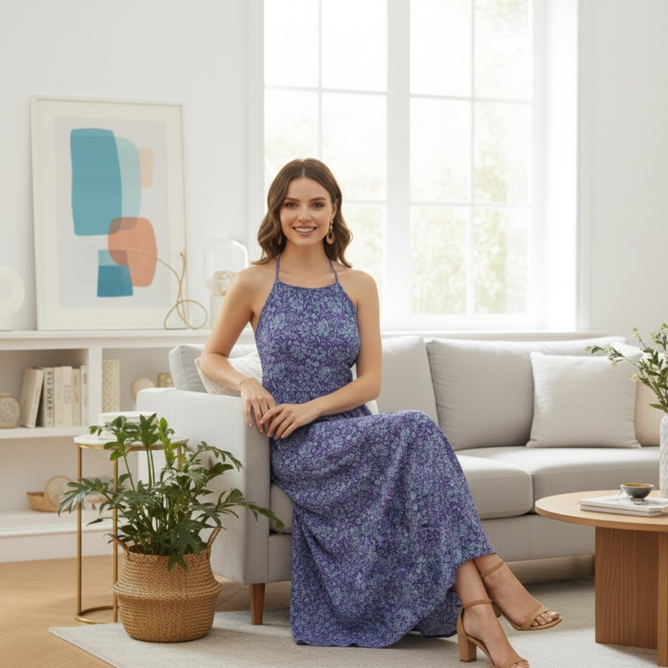 ชุดเดรสยาวผ้าไหมฮาบูไทสุดหรู สายเดี่ยว เปิดหลัง ลายดอกไม้ คุณภาพสูง สำหรับผู้หญิง ฤดูร้อน รุ่นแม็กซี่ ปี 2026