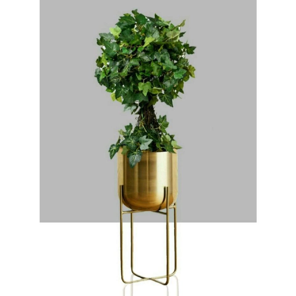 แจกันดอกไม้โลหะสีทองดีไซน์หรูหราพร้อมขาตั้งเคลือบด้วยผงสำหรับการจัดดอกไม้ที่สวยงามในการตกแต่งบ้าน
