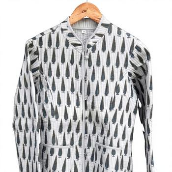High Quality Custom Block Printing Fabric Jackets With Cotton Quilted Button Down Nehru Design Coat Winter Warm Women's Coat