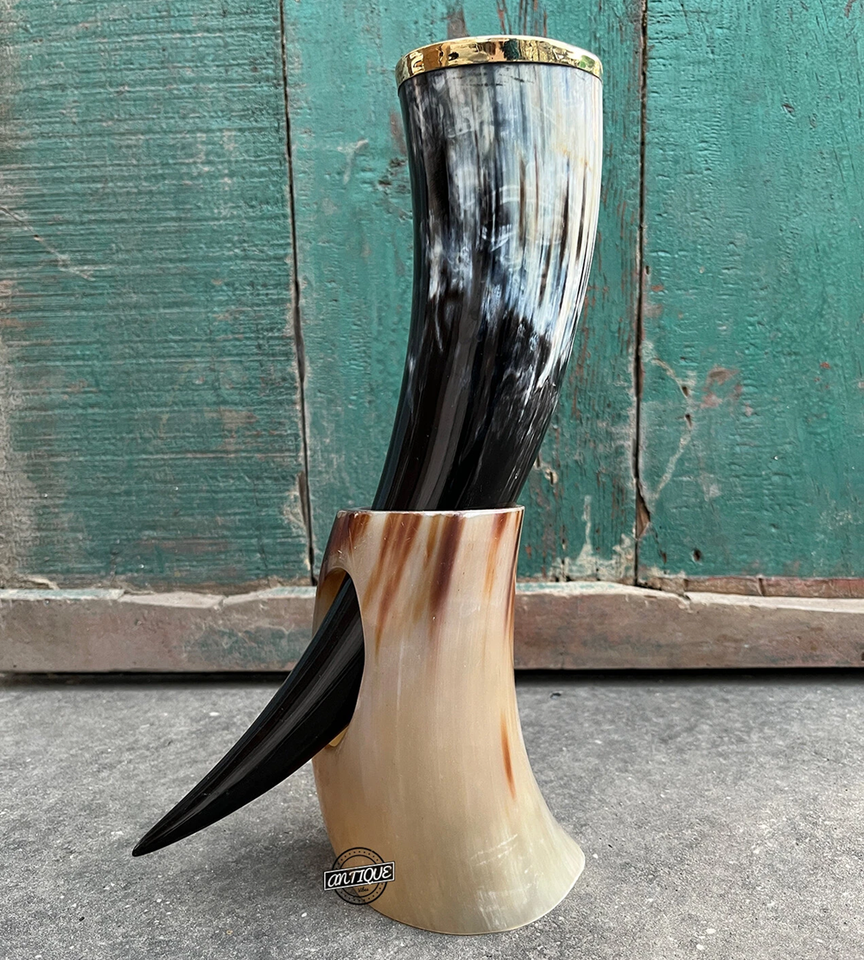 ฮอร์นสำหรับดื่มควายทำมือสุดหรูฮอร์นไวกิ้งขัดเงาด้วยมือมีขาตั้ง