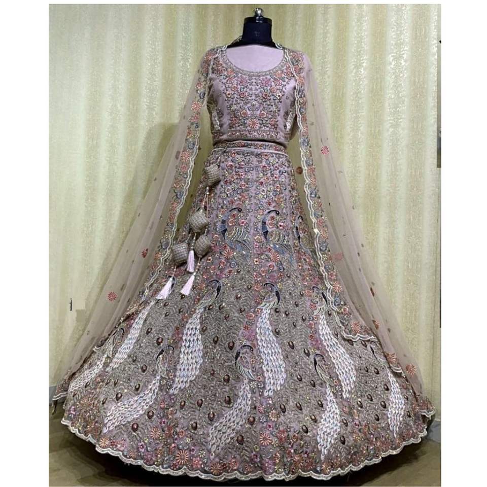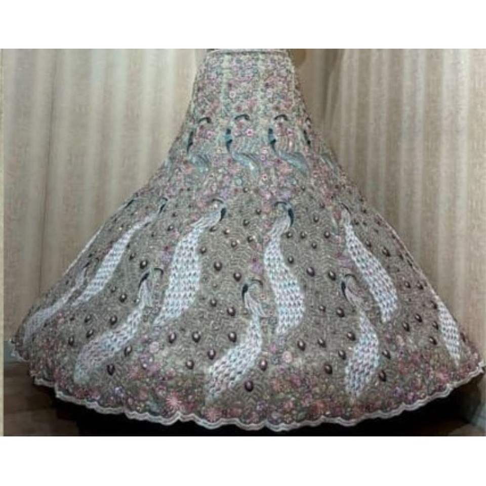 ชุด lehenga สำหรับเจ้าสาวงานปักด้วยมือสุดหรูพร้อมลวดลายเลื่อมและรายละเอียด zari สำหรับงานปาร์ตี้ขายส่งและส่งออก