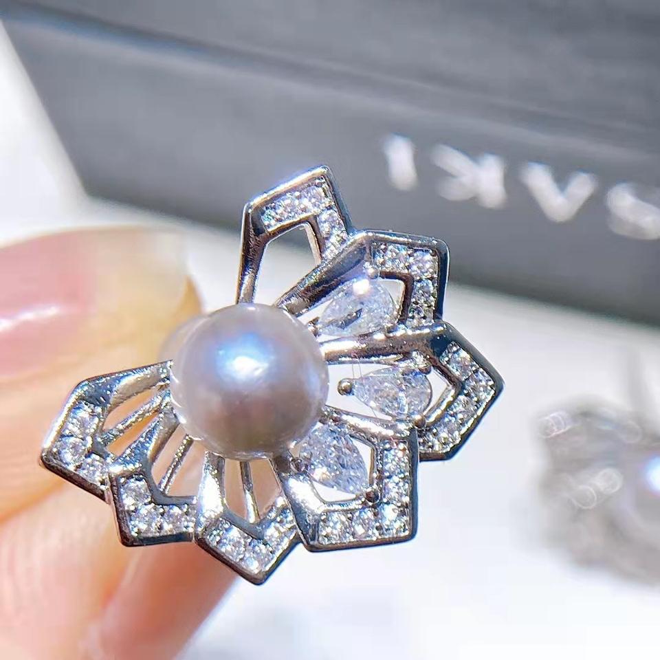 ต่างหูมุกเทียมสีเทาขนาด 5-6 มม. ประดับด้วยมุกแบบไมโครอินเลย์ งานแฮนด์เมดสุดหรู สไตล์เรโทร สำหรับผู้หญิง แฟชั่นสุดฮิต