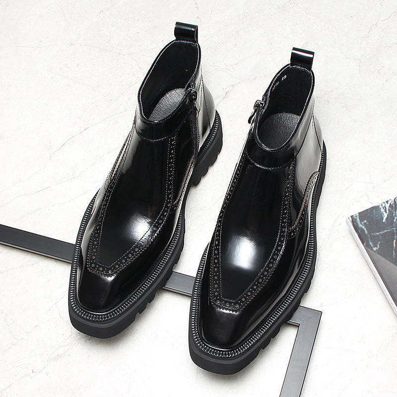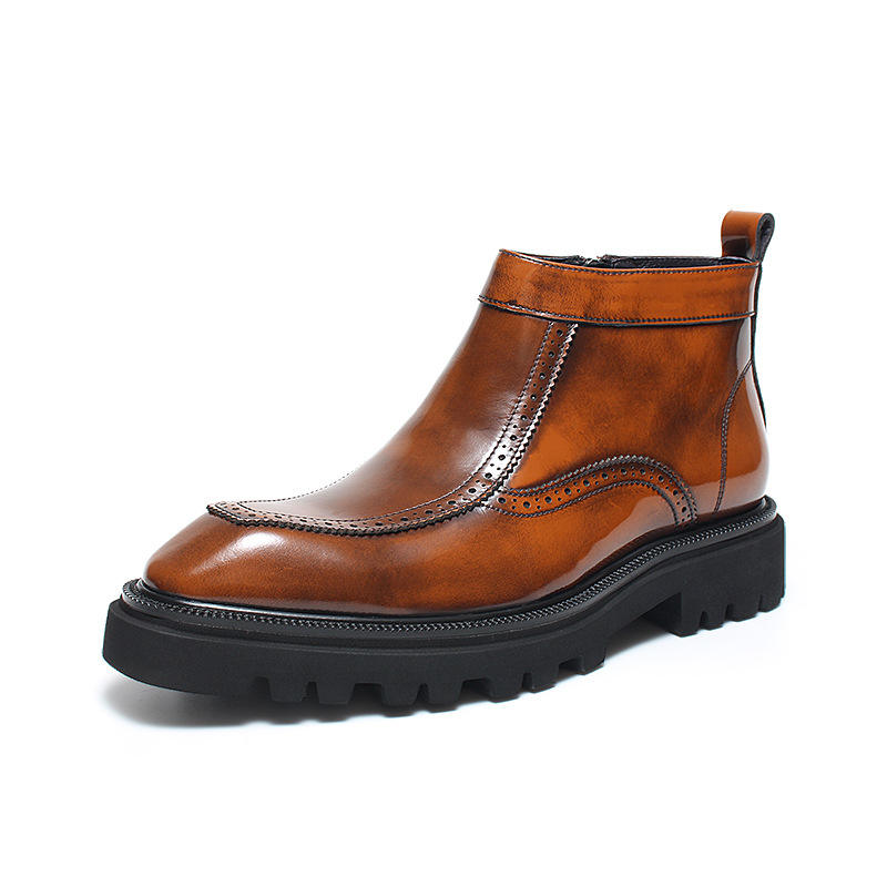 รองเท้าบูทผู้ชายสุดหรู ระดับไฮเอนด์ กันน้ำ แบบผูกเชือก ตัดเย็บด้วยวิธี Goodyear Welted หนังแท้สไตล์วินเทจ ทนทาน สำหรับทำงาน