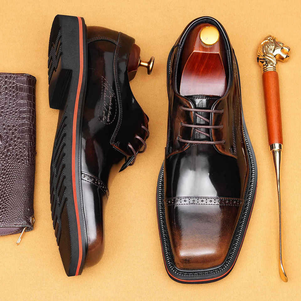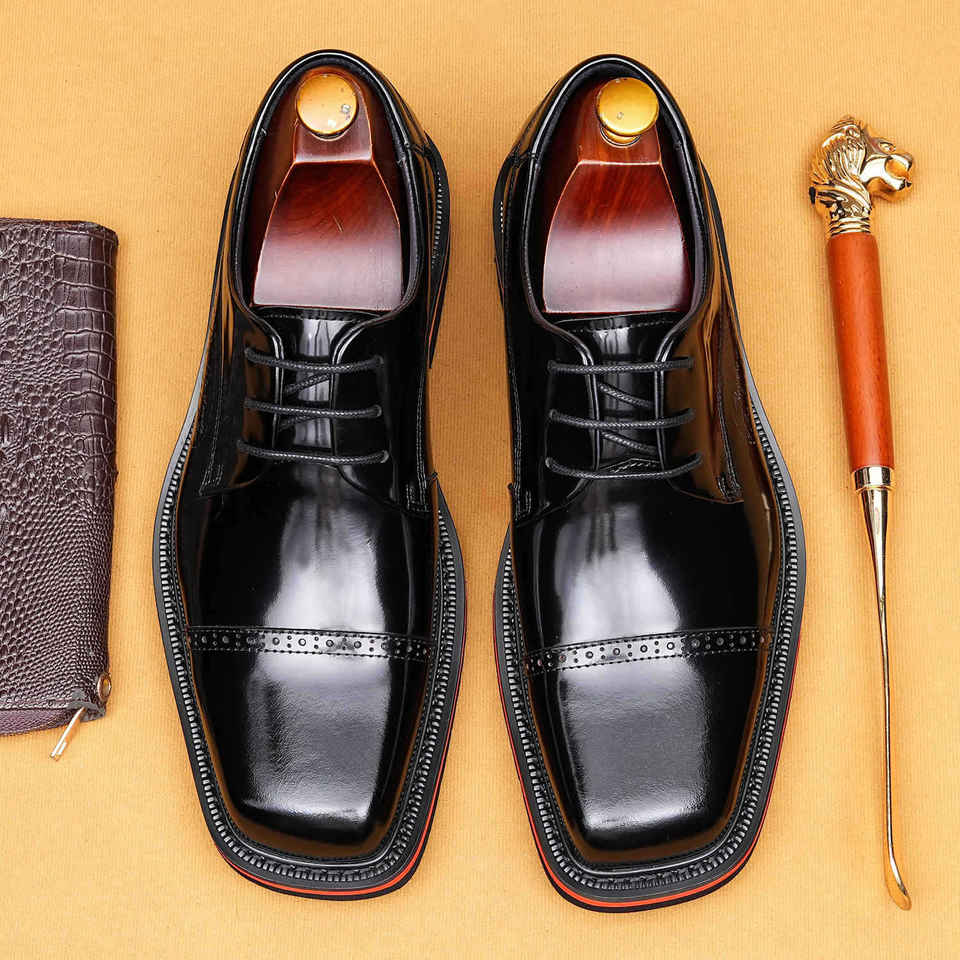 รองเท้าหนังออกซ์ฟอร์ดแบบผูกเชือกสำหรับผู้ชาย สไตล์ลำลองทางธุรกิจ คุณภาพสูง หรูหรา ผลิตด้วยมือแบบสามข้อต่อ ยี่ห้อ Goodyear พร้อมลายสลัก