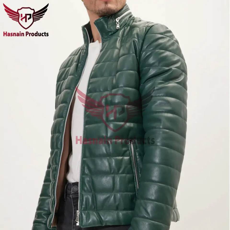 แจ็กเก็ตหนังปลาปักเป้าหนังแกะสีเขียวสำหรับผู้ชายเสื้อนอกหนังแกะหรูหราสำหรับฤดูหนาว