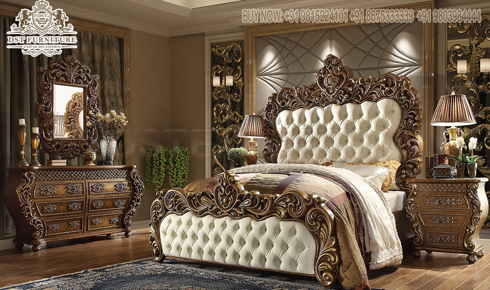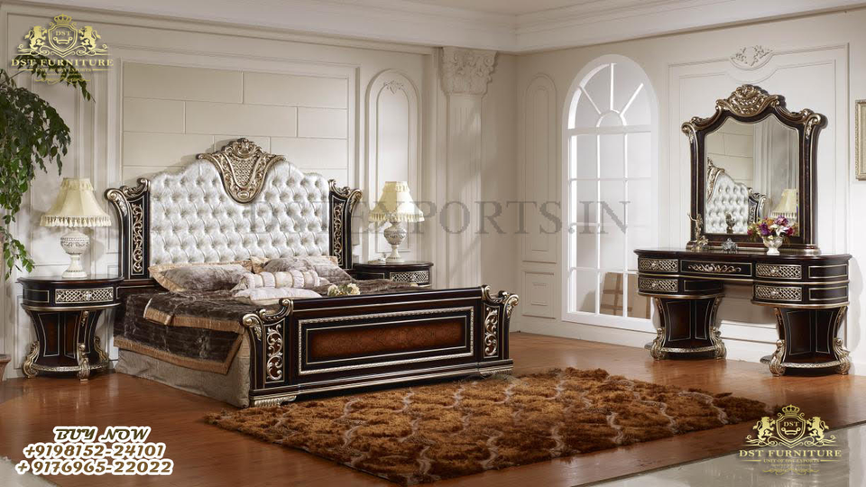 Luxurious Leather Tufted Bed With Side Tables
