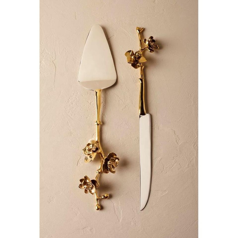 ชุดเซิร์ฟเวอร์เค้กแต่งงานสแตนเลสสตีลมือจับโลหะหรูหราปาร์ตี้ขนมกิ่งไม้กับดอกไม้นูนที่น่าตื่นตาตื่นใจ