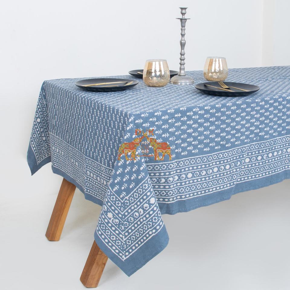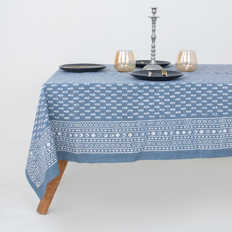 ผ้าปูโต๊ะลายดอกไม้พิมพ์ลายบล็อกด้วยมือแบบอินเดีย รุ่นลิมิเต็ดอิดิชั่นสุดหรู ทำจากผ้าฝ้ายพิมพ์ลายด้วยเทคนิคดาบุ ผลิตด้วยมือ