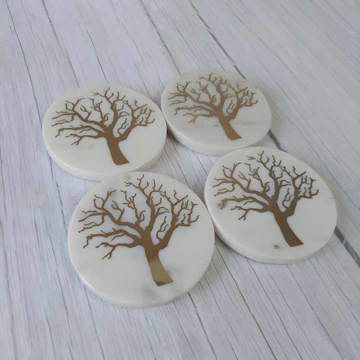 ชุดแผ่นรองแก้วลายหินอ่อนทองเหลืองสุดหรูของ Ali Baba ชุดงานฝีมือพิเศษสำหรับตกแต่ง