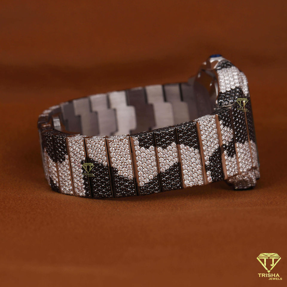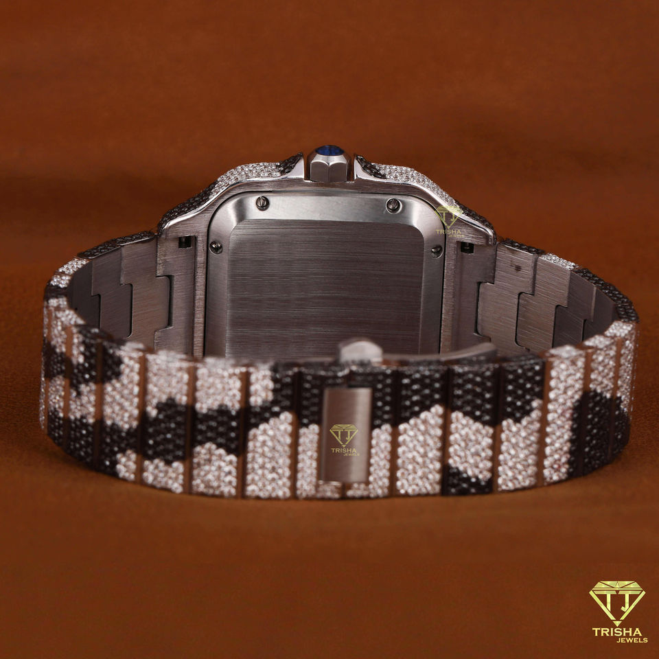 นาฬิกาข้อมือผู้ชายสุดหรู ขนาด 41 มม. หน้าปัดสี่เหลี่ยม สีดำขาว ประดับเพชรเลี้ยงในห้องปฏิบัติการ ระบบอนาล็อก โมอิสซาไนต์ สายสแตนเลสสตีล 22 มม. ดีไซน์แบบ Iced Mechanical
