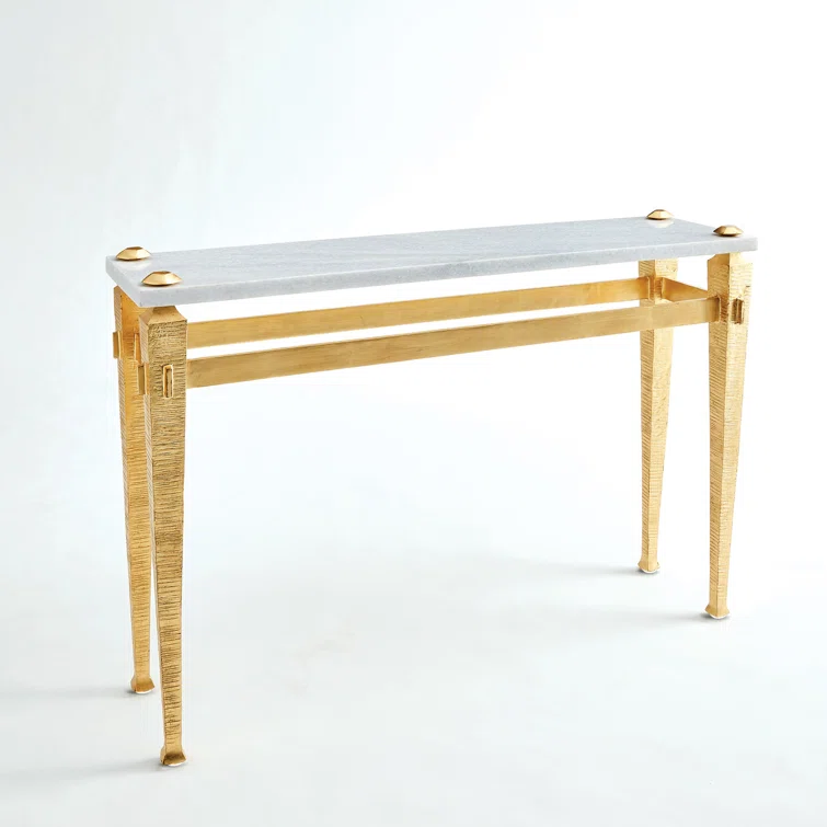 โต๊ะคอนโซลทำด้วยมือทำจากโลหะสีทองพร้อมเฟอร์นิเจอร์ด้านบนหินอ่อนที่ทำด้วยมือดูหรูหราดูน่าดึงดูด