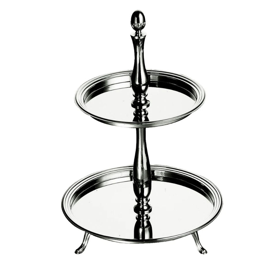 ชั้นวางเค้กสแตนเลส 2 ชั้น ดีไซน์หรูหราทันสมัย สำหรับเสิร์ฟขนมหวาน ปิแอตต์ฟูร์ และของว่าง มีจำหน่าย