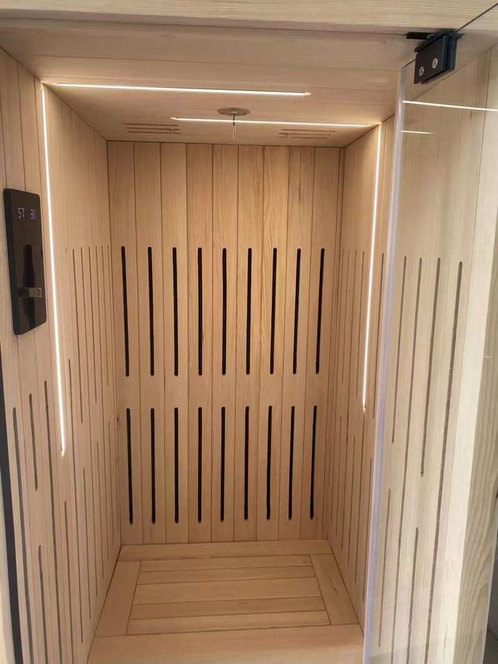 ห้องซาวน่าไฟฟ้าในร่มสุดหรูทันสมัยสำหรับ 1 คน ทำจากไม้เนื้อแข็งพร้อมระบบแผ่นคาร์บอนคริสตัล เหมาะสำหรับอพาร์ทเมนต์และวิลล่า