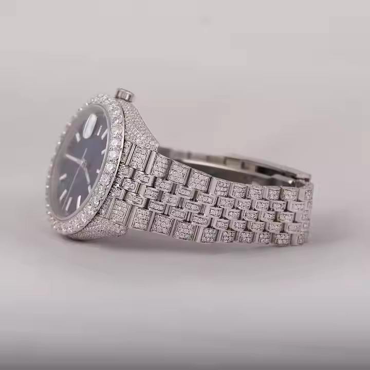 นาฬิกาโครโนกราฟเพชรมอยส์ซาไนต์สุดหรูสำหรับผู้ชายฮิปฮอปกับสแตนเลสและ VVS ชัดเจนแฟนซี
