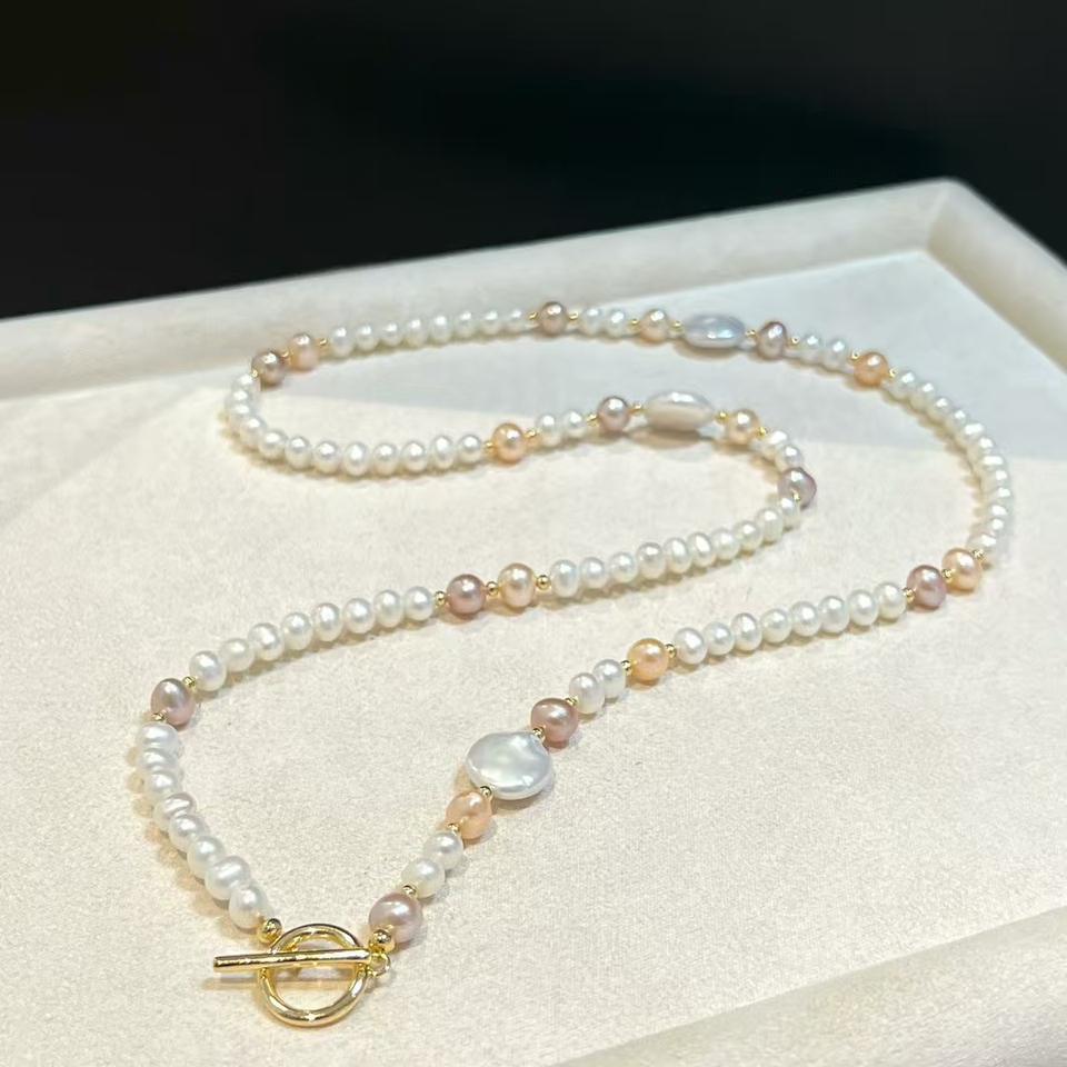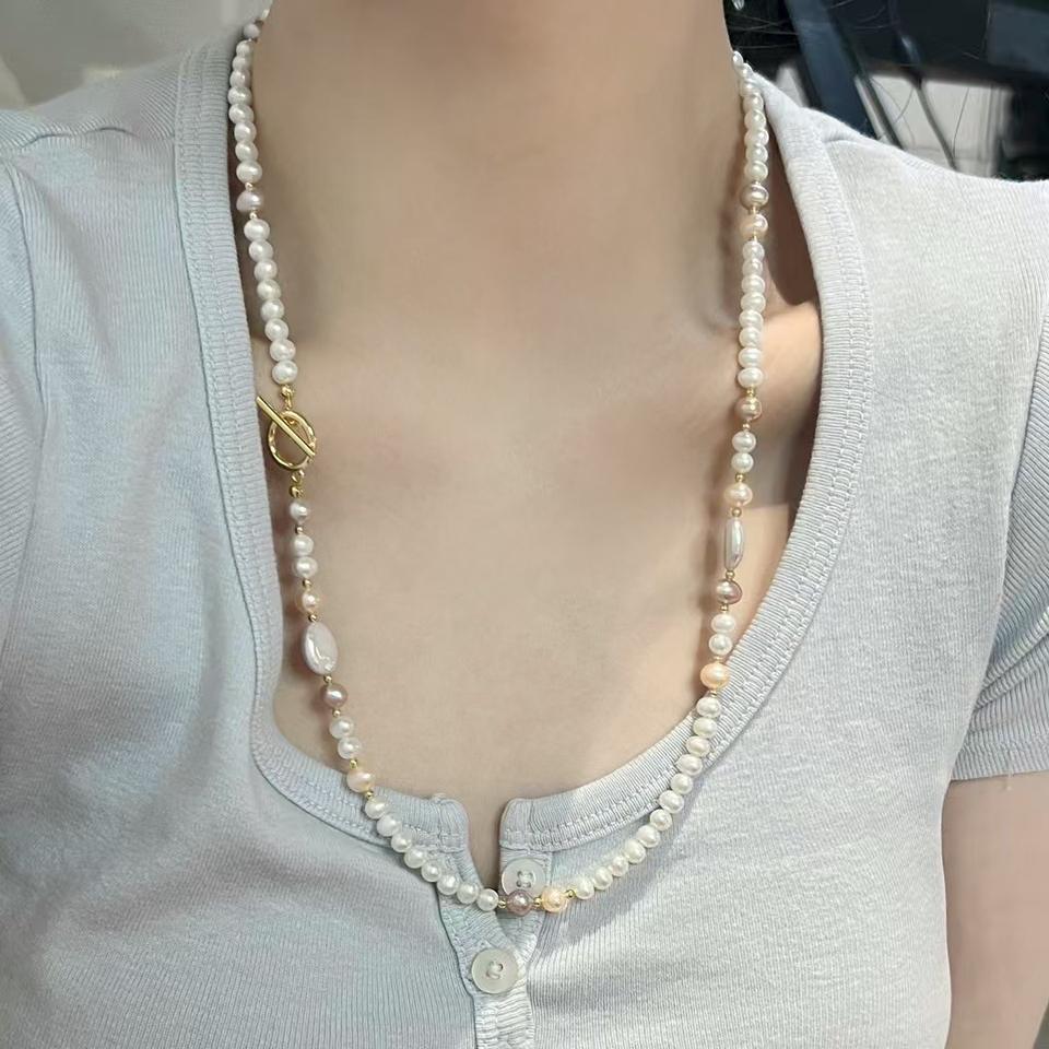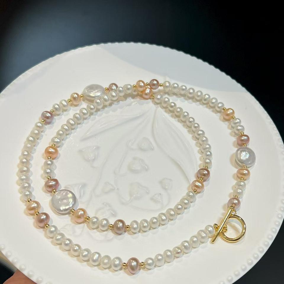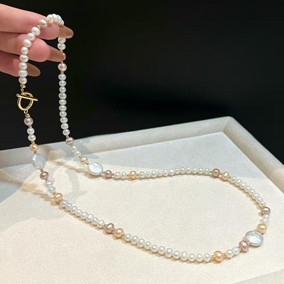 สร้อยคอหลายชั้นสุดหรู พร้อมผมยาวพิเศษ ประกายแสงสวยงาม ประดับด้วยไข่มุกธรรมชาติ ให้ความรู้สึกหรูหราและเบาสบาย