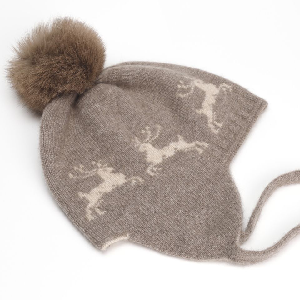 หมวกแคชเมียร์แบบมองโกเลียสีน้ำตาลธรรมชาติหรูหรามีที่ปิดหูแบบกวางมีลายกวางกีฬากลางแจ้งเล่นสกีขี่จักรยานท่องเที่ยวปาร์ตี้ฤดูหนาว