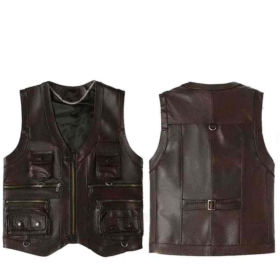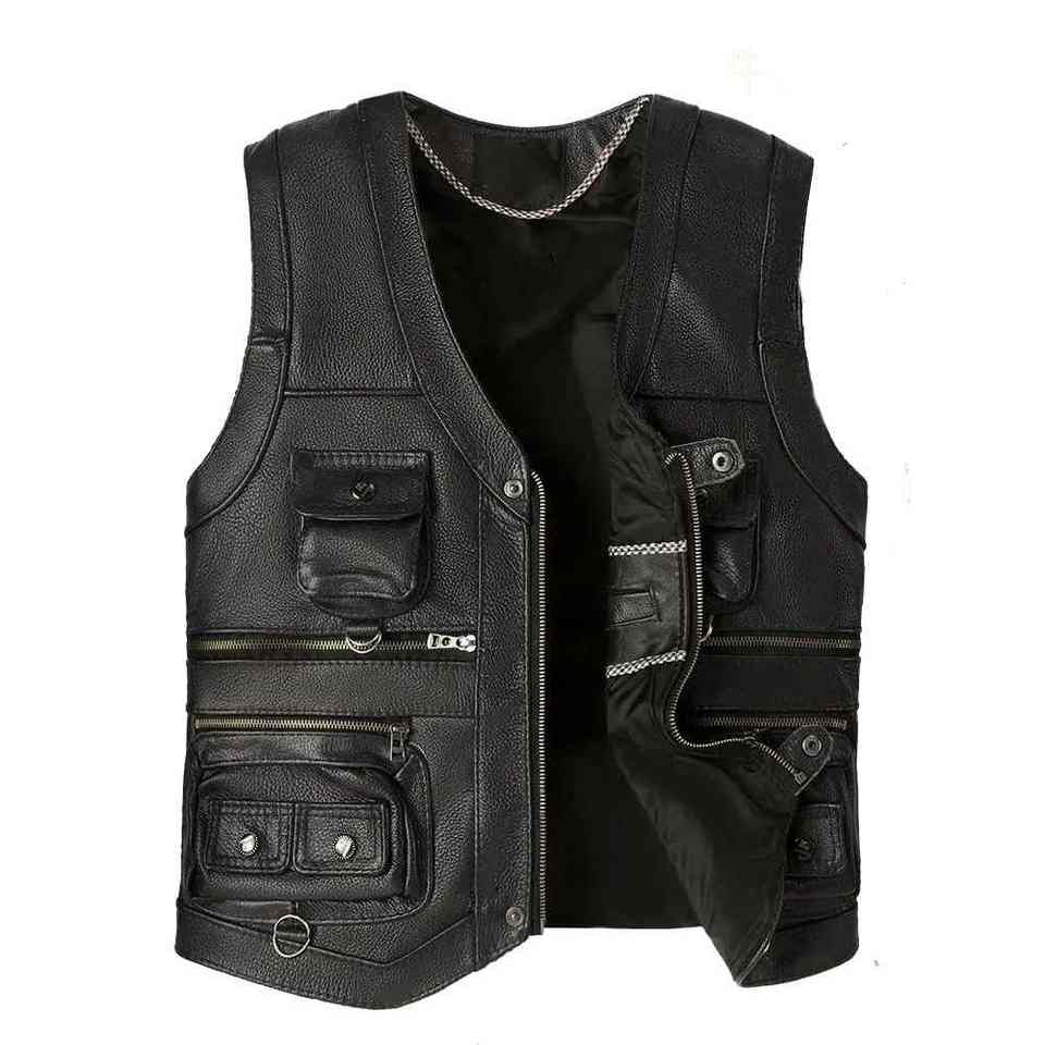 เสื้อกั๊กหนังแท้สำหรับผู้ชายกันลมให้ความอบอุ่นเสื้อกั๊กหนังแท้ใหม่สุดหรูมีสไตล์
