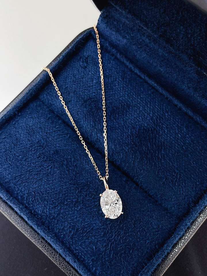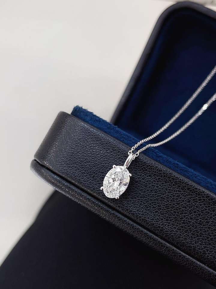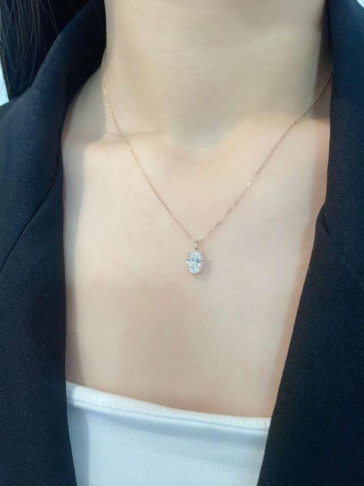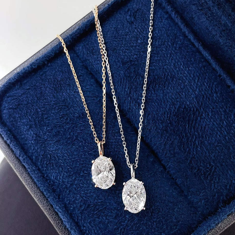 จี้เพชรรูปไข่ทรงหรูหรา เพชรเลี้ยงในห้องปฏิบัติการ สี D-E-F ความใส VVS-VS แบบโซลิแทร์ที่ยั่งยืน ของขวัญเครื่องประดับชั้นดีสำหรับเธอ