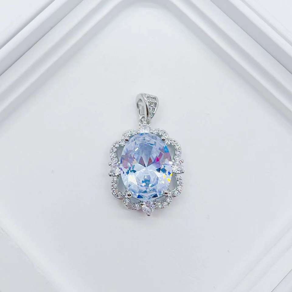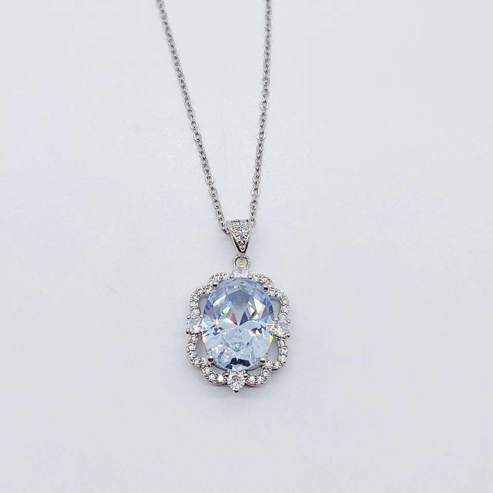 สร้อยคอจี้ตัดรูปดอกไม้และน้ำแข็งประกายรูปวงรีสุดหรูพร้อมโซ่ระดับกระดูกไหปลาร้าเพทายฝังสูง