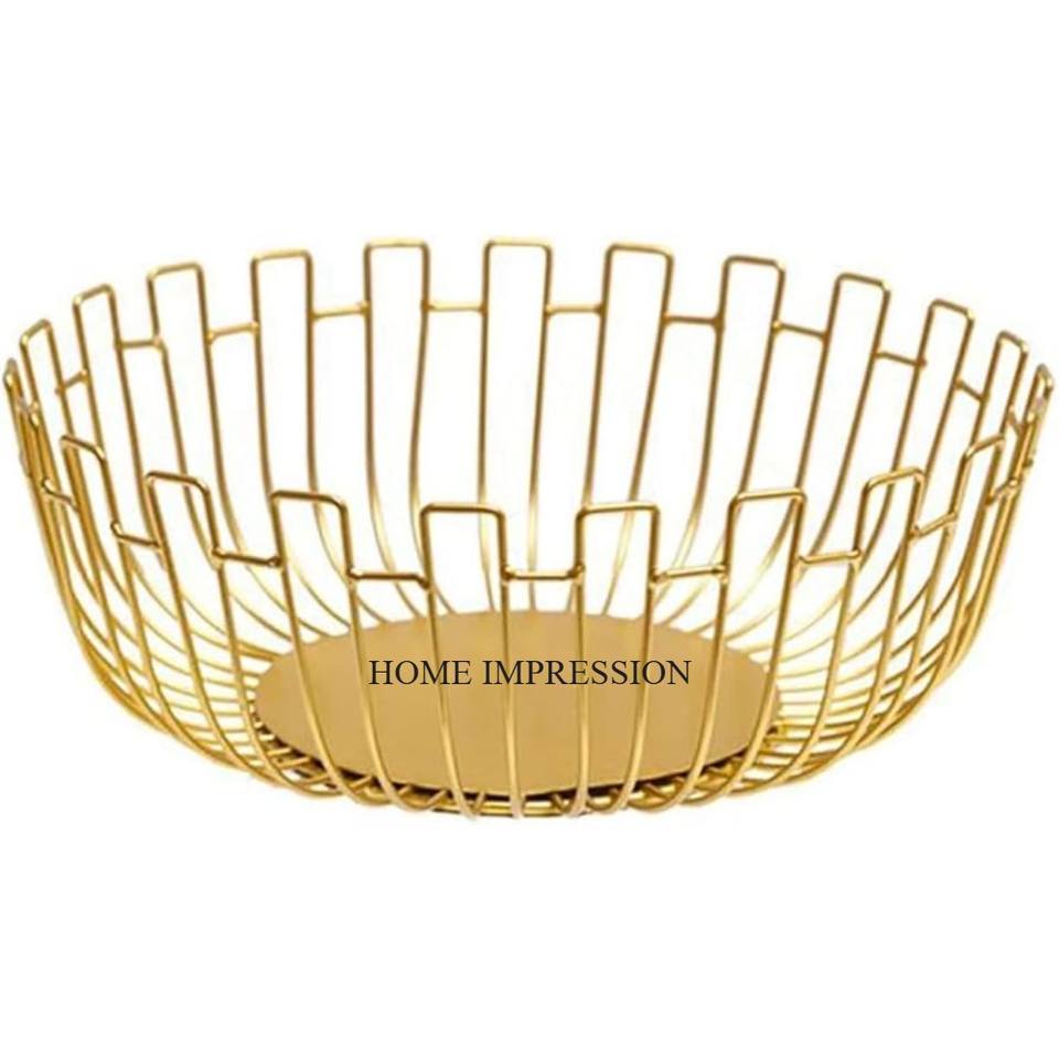 ตะกร้าจัดเก็บขนมปังและผลไม้ทำจากลวดโลหะชุบทองหรูหราดีไซน์เนอร์แฟนซีอันเป็นเอกลักษณ์