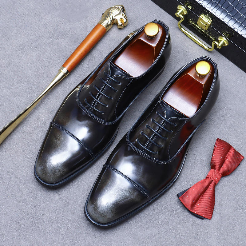 รองเท้าหนังแท้ผู้ชายสไตล์อิตาลี คุณภาพหรูหรา สำหรับใส่ทำงาน ดีไซน์แบบผูกเชือก งานแฮนด์เมด กันลื่น