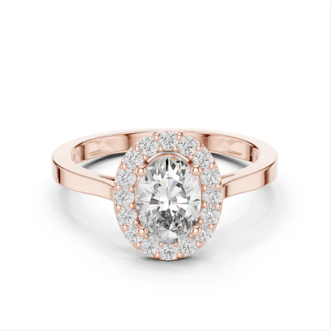 แหวนหมั้นเพชรรูปวงรีสีโรสโกลด์หรูหราพร้อมดีไซน์ประณีตสำหรับงานแต่งงานและการขอแต่งงานจากอินเดีย