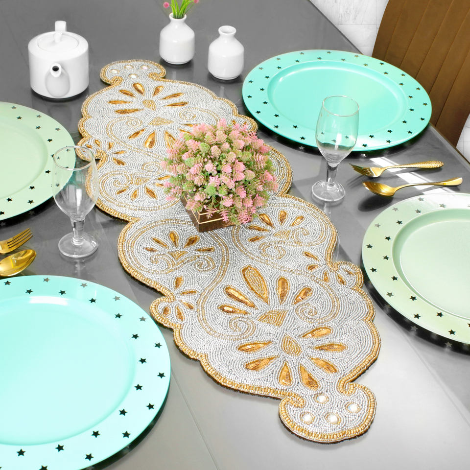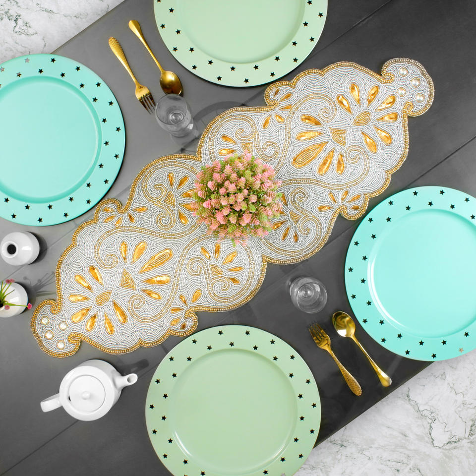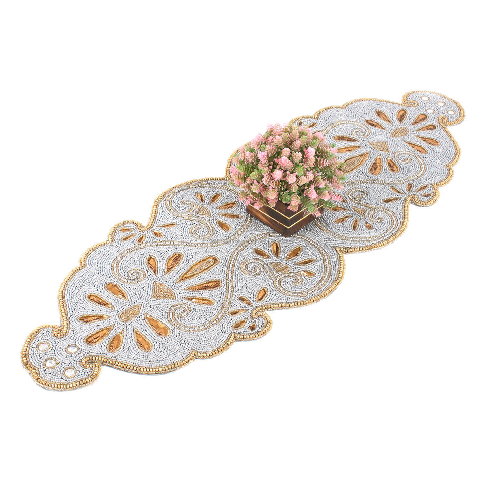 ผ้าปูโต๊ะผ้าฝ้ายสไตล์ราชวงศ์หรูหราปักด้วยลูกปัดทำด้วยมือสำหรับตกแต่งโรงแรมและร้านอาหารสำหรับงานแต่งงานและของขวัญ