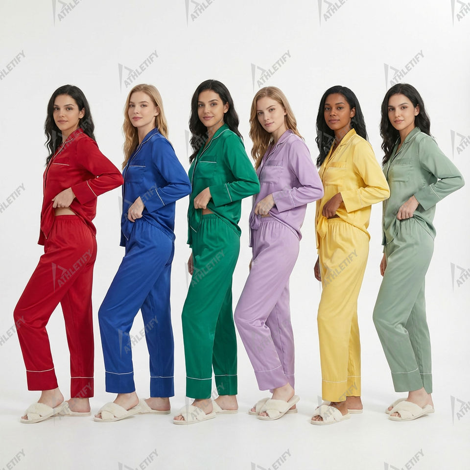 ชุดนอนผ้าซาตินเนื้อนุ่มหรูหราสำหรับผู้หญิง ผลิตตามสั่ง เอวยางยืด สวมใส่สบาย มีหลายสีให้เลือก