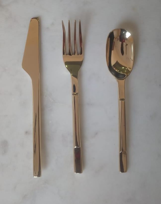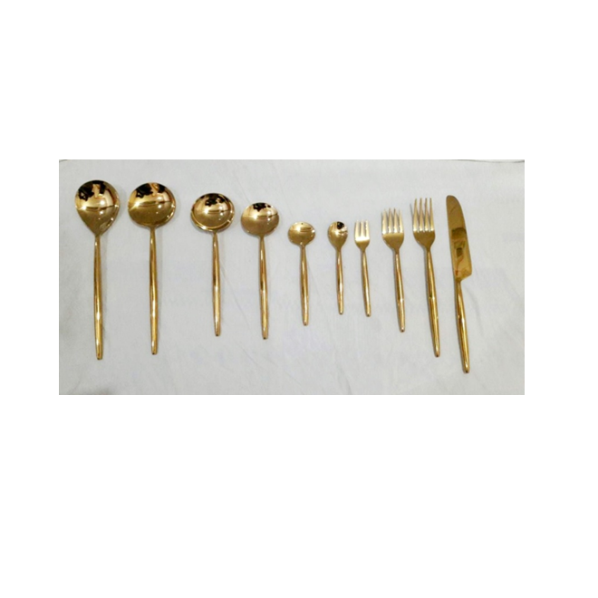 ชุดเครื่องใช้บนโต๊ะอาหารสแตนเลสสุดหรูช้อนส้อมแฟนซีสีทองสำหรับเป็นของขวัญทางธุรกิจ