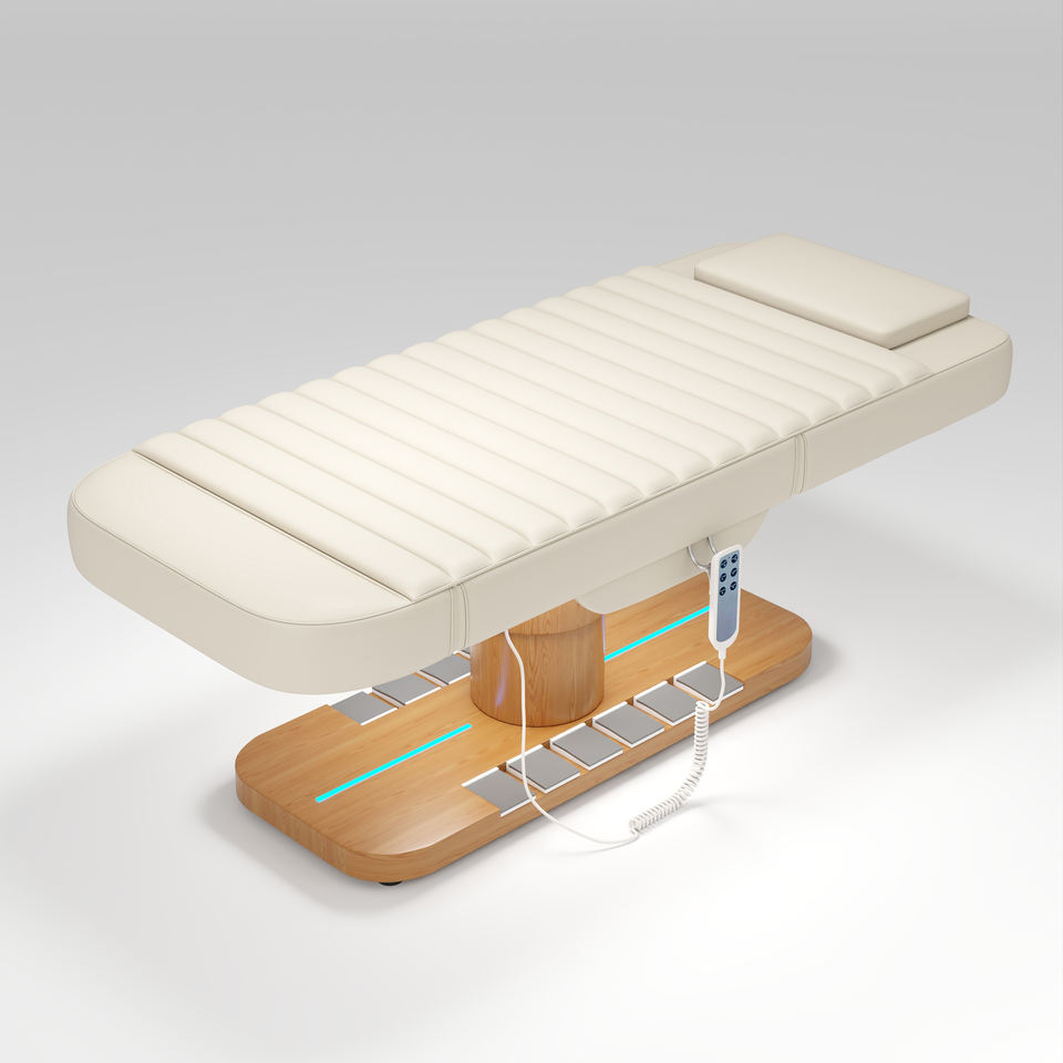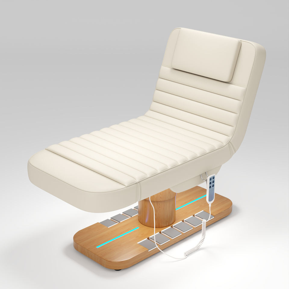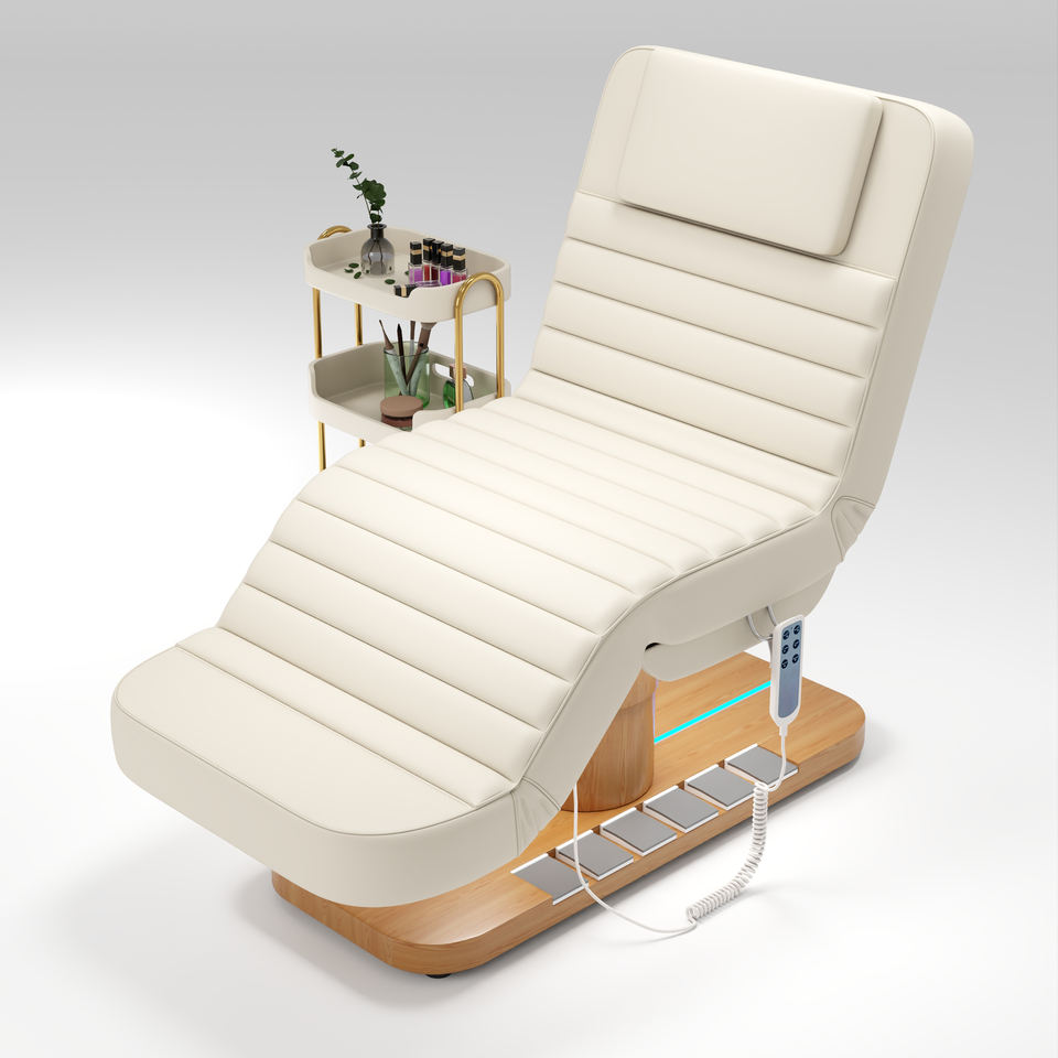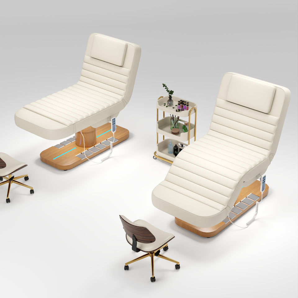โต๊ะนวดหน้าปรับได้เก้าอี้สแตนเลสไฟฟ้าแบบทันสมัยหรูหราฐานเรืองแสงสำหรับร้านเสริมสวย