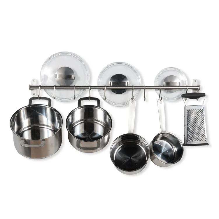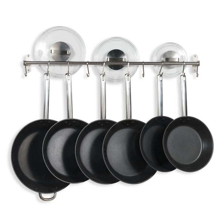 ชั้นวางหม้อเหล็กหรูหราสำหรับฝาหม้อและตะขอแขวนกระทะ อุปกรณ์ครัวแบบติดผนัง ชั้นวางเก็บของแบบแขวนสำหรับจัดระเบียบห้องครัว