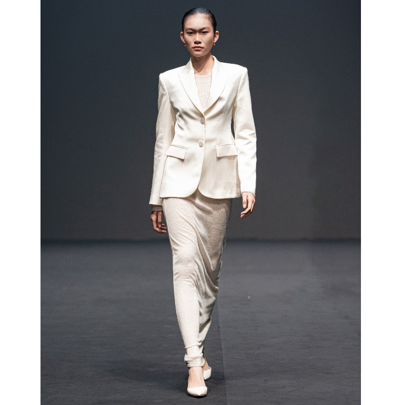 Luxurious Style Blazers Ladies Women Front Pockets Women'S Clothing Tamy Silk- Satin Blazer Mison Satin Fabric Whiteant Vietnam