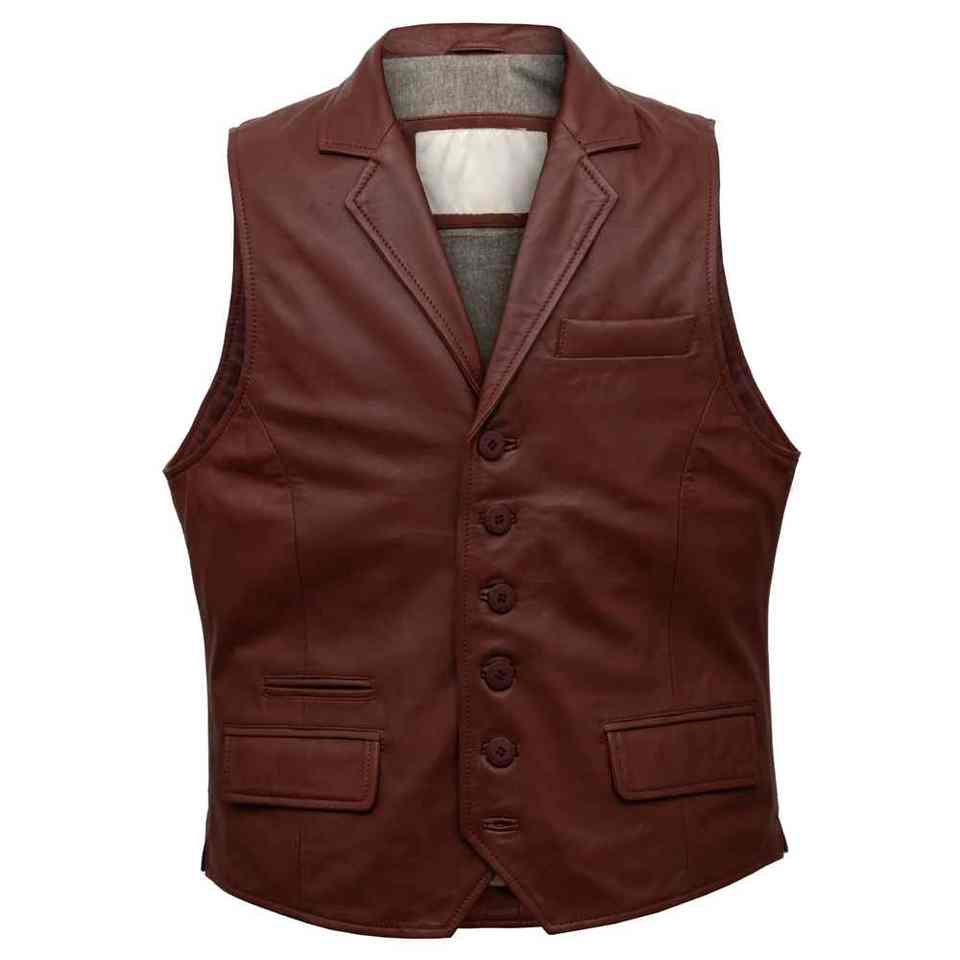เสื้อกั๊กหนังแท้สำหรับผู้ชาย, เสื้อกั๊กหนังแท้ให้ความอบอุ่นและกันน้ำในขนาดต่างๆสีทึบเสื้อกั๊กหนังสไตล์หรูหรา