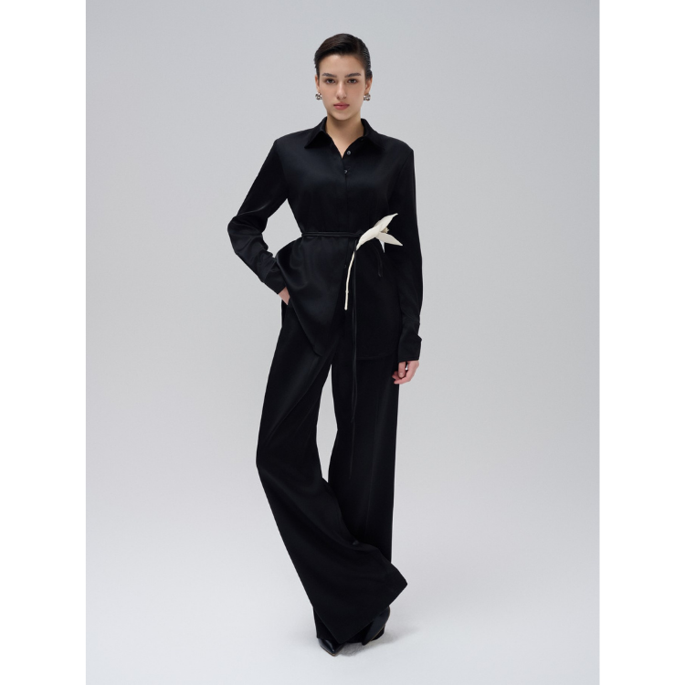 กางเกงลำลองผู้หญิงสไตล์หรูหรากางเกงขาแบบทางการกางเกงผ้าเป็นมิตรกับสิ่งแวดล้อมสีขาวสำหรับผู้หญิงผลิตจากเวียดนาม