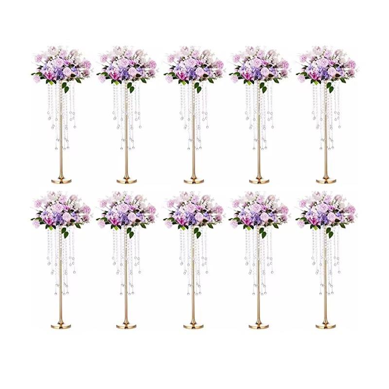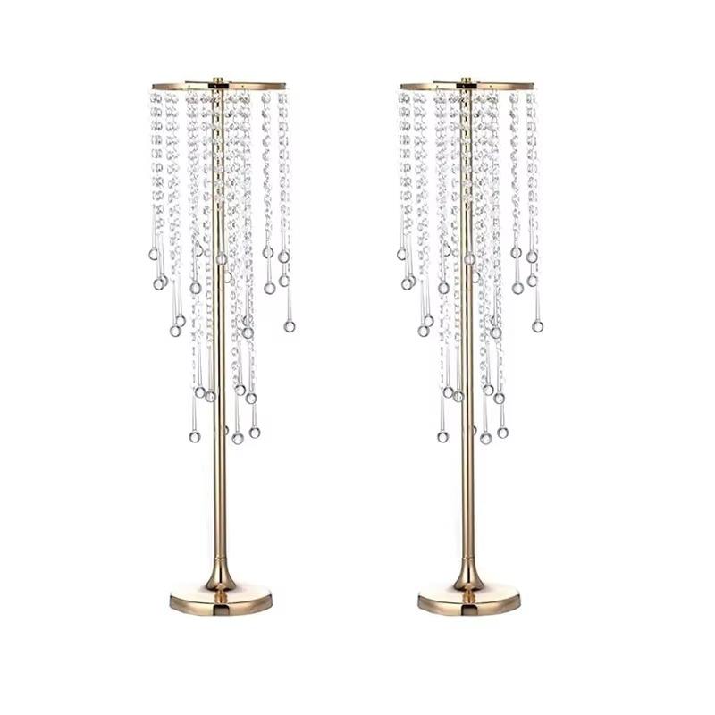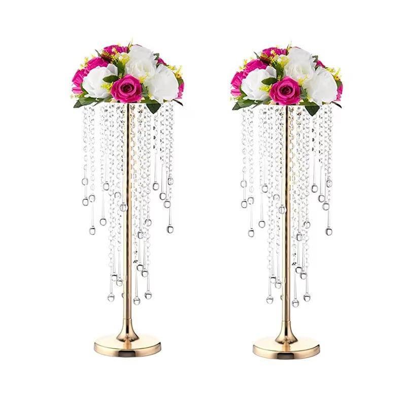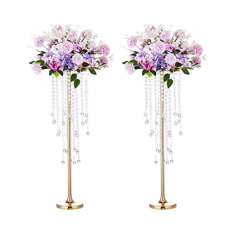 ขาตั้งดอกไม้โลหะสีขาวทรงสูงคุณภาพสูงหรูหราสำหรับตกแต่งโต๊ะงานแต่งงาน แจกันดอกไม้ประดิษฐ์ โคมระย้าคริสตัล