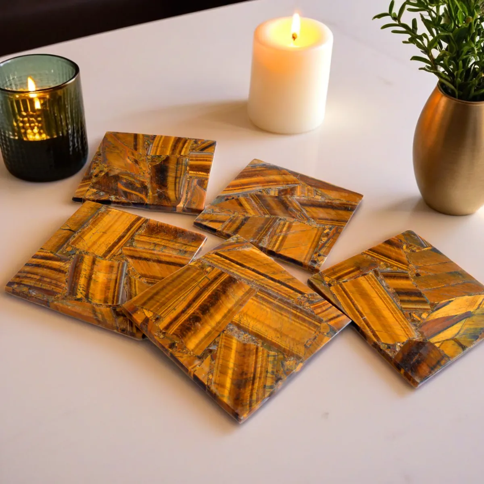 Luxurious Tiger eye stone Coaster Set for Modern Home Decor Elegant Stone Coasters for Drinks Stylish Coffee Table.